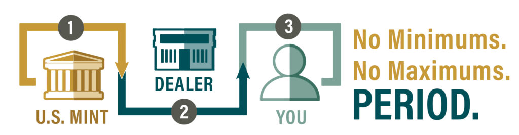 Our direct-to-customer approach eliminates the middle man, giving you straightforward access to gold and silver bullion at competitive prices without any tricks or gimmicks. No minimum purchase required, and no maximum limit. Period.